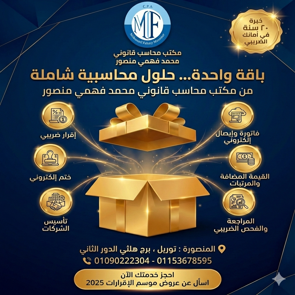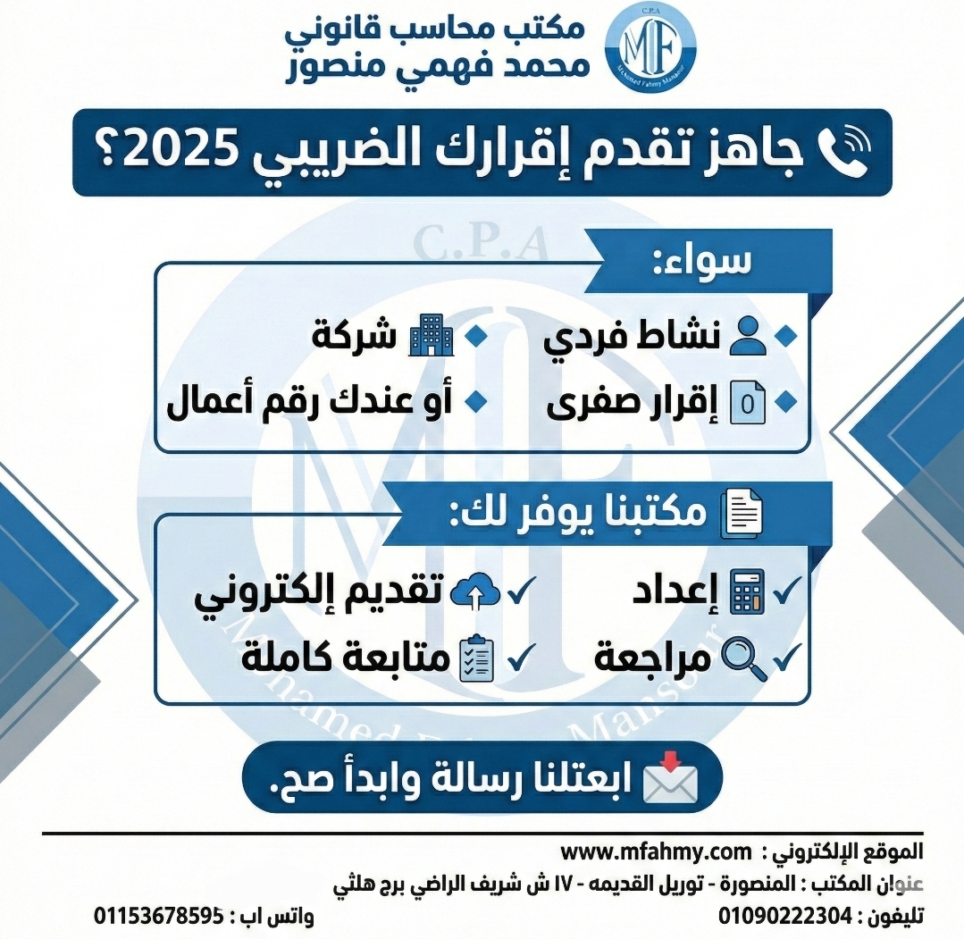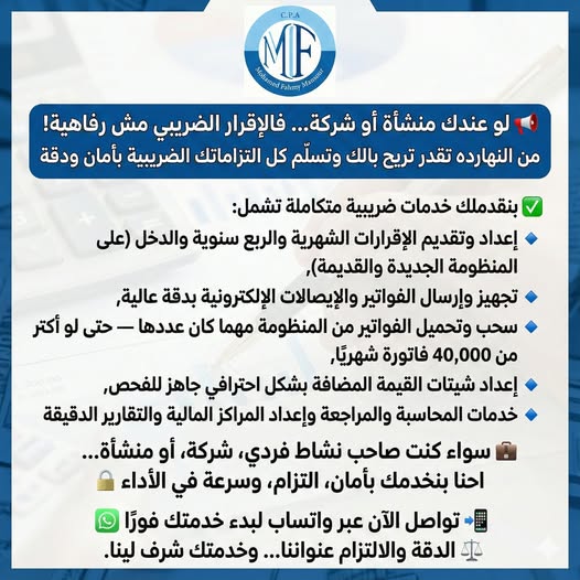 مكتب محاسب قانوني محمد فهمي منص #محاسب_قانوني #محاسبة #ضرائب #اقرار_ضريبي #الفاتورة_الالكترونية...